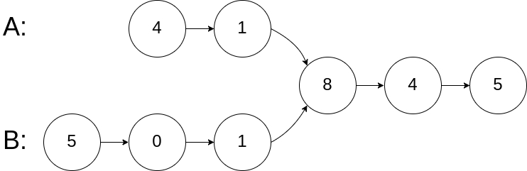 Input: intersectVal = 8, listA = [4,1,8,4,5], listB = [5,0,1,8,4,5],
